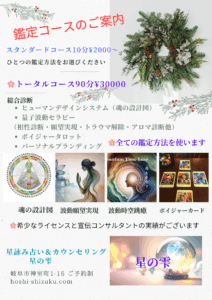 コースのご案内🌈スケジュール 今後のスケジュール 12月9日 名古屋セッション 相生山蓮庵 12月13日 ベースマルシェ 各務原ニワトリベース 12月16日 星詠みタロット 喫茶星時 1月24日 ブランツェマルシェ 喫茶プランツェ 1月25日 占いマルシェ 岐阜ビル